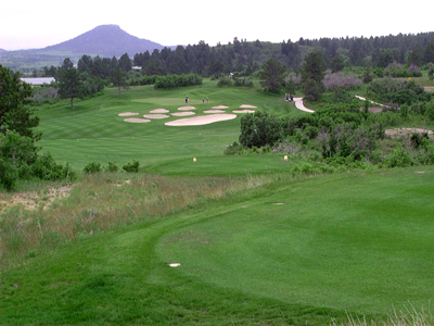 One of the first golf courses Pete Dye designed is the Country Club of Colorado and it is just south of downtown Colorado Springs. In true Pete Dye style the course is not an easy one. As you pass the course on highway 115, which goes to Fort Carson, you will notice a huge lake. This lake has an impact on five holes, so if you have an affinity for water holes, here's your course. My favorite is the four-par number 10. It's my favorite mainly for the view of the acre, it seems, of sand to test your approach skills. To the right and you are in very big trouble if your shot strays. If you take too much club and hit through the green you get wet. This is one of those shots where you might consider setting up your third shot from the fairway rather than trying to nail one on the pin. SFG 5.8.