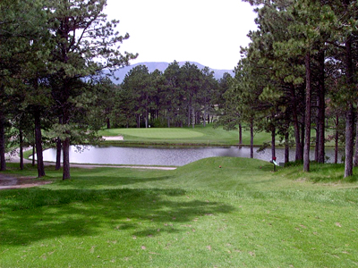 The Woodmoor Pines Country Club in Monument offers you the opportunity of walking in a forest of pine trees. This course will challenge your ability to keep virtually every shot as straight and targeted as possible. Fairways are generally narrower than most courses you may be use to playing. Three par number thirteen is a beautiful hole where you have to shoot through the forest and over a pond. It's quite friendly for those of us who occasionally push or fade our short shots because there is no problem to the right of the green after clearing the pond. If you pull or hook your shot, it may land in a left side bunker. My SFG rating for Woodmore Pines is SFG 6.3. To play Woodmoor pines you will have to go as a member's guest or, then again, check tournaments on the SFG web site.