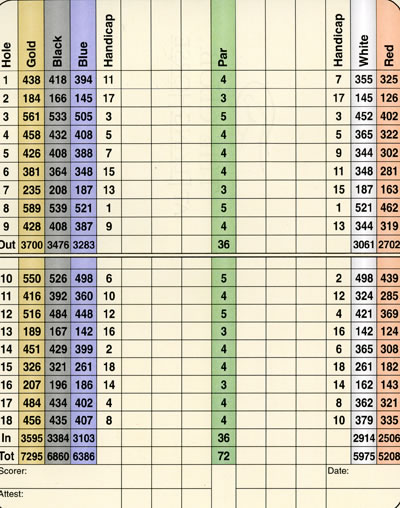 Since the score card and tee markers do not have illustrations of each hole, you will need a yardage book or someone in your group who has played the course before to find your way. The yardage book is very comprehensive and worth the price, what ever that will be.